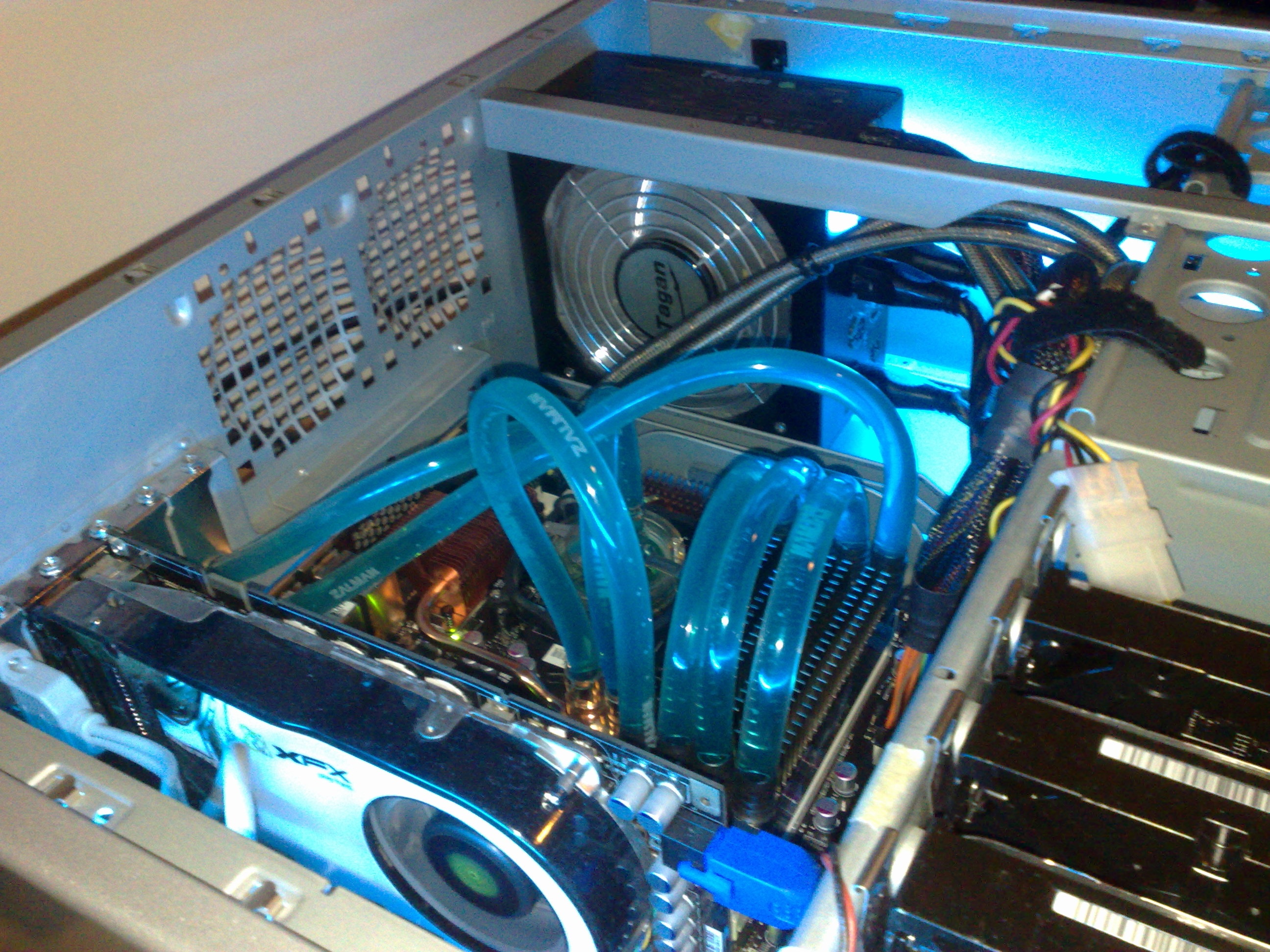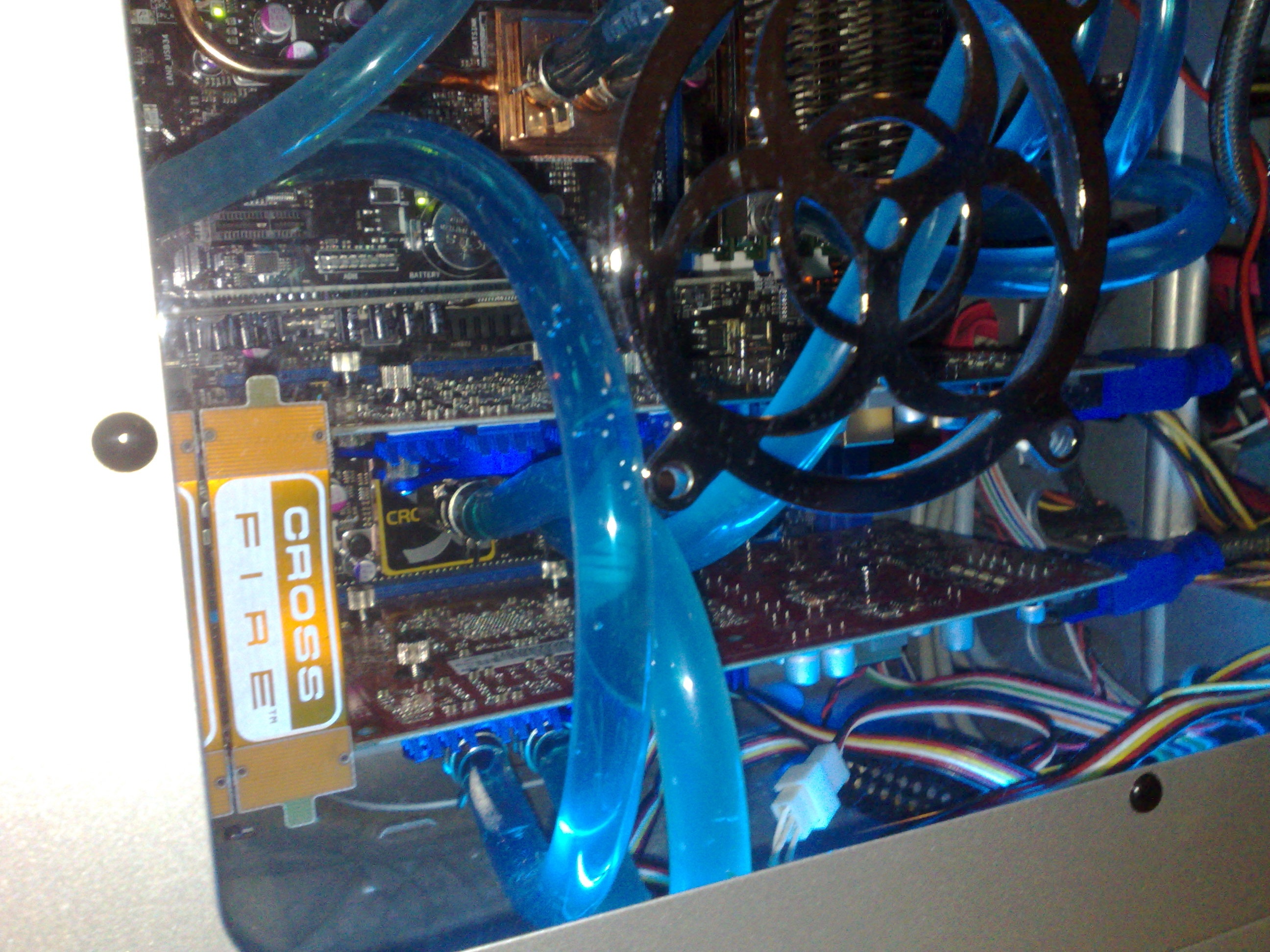 Toen er twee crossfire kaarten aangeschaft werden en deze zoveel lawaai maakten zou hier ook waterkoeling op komen. Maar dat trok de zalman niet langer meer.